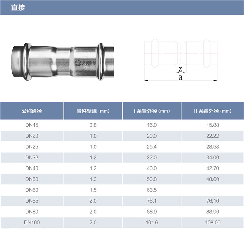 丨質(zhì)量體系(Quality system): 公司擁有ISO9001質(zhì)量管理體系認證和壓力管道元件制造許可證,具有健全的質(zhì)量檢測控制體系,配備設(shè)立了工業(yè)CT、化學(xué)分析、渦流檢測、水壓試驗、氣密性試驗、萬能試驗機等檢驗環(huán)節(jié)或檢測設(shè)備,并建立了以顧客滿意為目標(biāo)的售后服務(wù)體系,保證產(chǎn)品質(zhì)量,滿足顧客需求 場景應(yīng)用 (Application): 醫(yī)院、地鐵站、學(xué)校、會議中心、機場、家庭用水、小區(qū)二次供水、終端家裝等 丨關(guān)于運輸(Transport): 普通運輸,打捆不包裝運輸;特殊運輸 打捆外包(包、箱、防護集裝箱)運輸。 如有其它特殊要求請咨詢在線客服或致電:13573388823。 丨連接方式及安裝步驟(Connection method): 雙卡壓式、溝槽式、承插焊接式 丨產(chǎn)品圖片(Product Pictures):